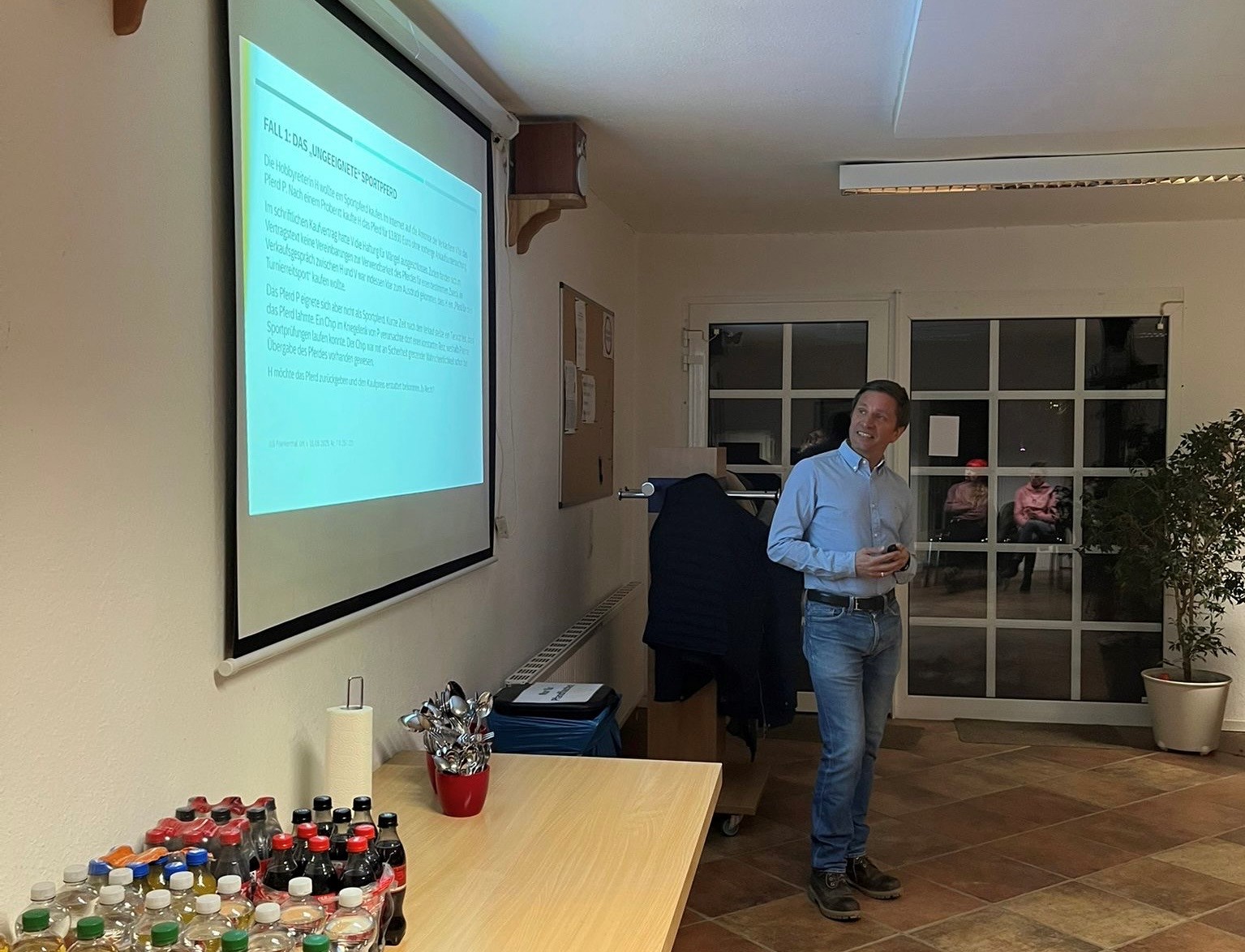 Anhand aktueller Entscheidungen zu Pferdekauf, AKU, Einstellverträgen, Tierhalterhaftung und weiteren Themen stellte er souverän und verständlich die wichtigsten Aspekte des Pferderechts vor. Das interessierte Publikum aus Vereinsmitgliedern und Kursgästen nutzte im Anschluss die Gelegenheit, Fragen zu stellen und die einzelnen Themen gemeinsam zu diskutieren.